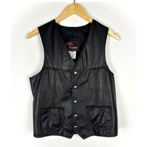 Vintage Black Leather Western Biker Vest - Snaps - Men's - Made in Canada - S/M
