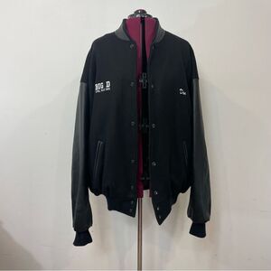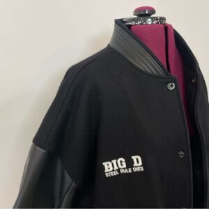 Vintage Black Leather and Wool Varsity Jacket XXL