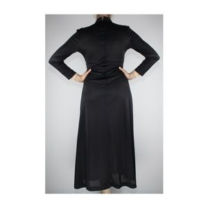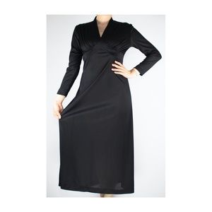 Vintage 1970โs Black Empire Waist Windsor Longsleeve Gothic Polyester Maxi Dress Medium Size ๐ค