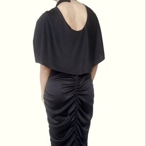 Vintage Black Mesh Polka Dot Draped Victorian Pin Up Retro Rockabilly Dress S/M