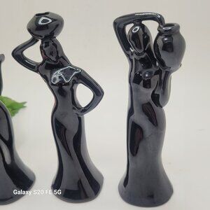 Vintage Black Minimalist Lady Figurines Statue Red Ware Ceramic Art Deco Retro