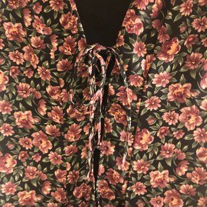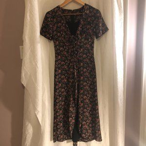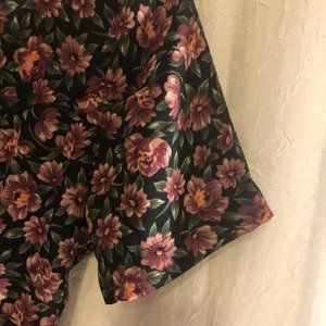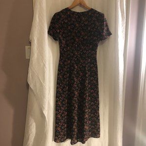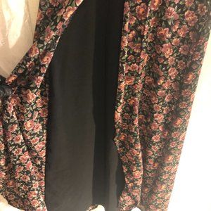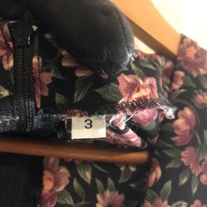 Vintage Black & Orange Floral Midi Dress with Front Slit (Size SP)