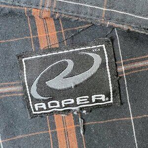 Vintage Black & Orange Plaid Western Pearl Snap L