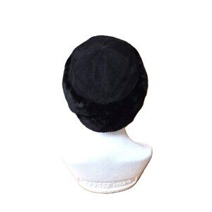 Vintage Black Pig Split Suede Russian-style Pillbox Hat Jackie O style Quiet Lux