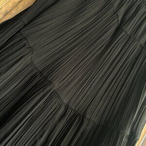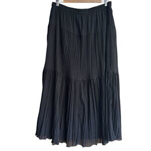 Vintage Black Pleated Tiered Maxi Skirt Women’s L Sheer Lined Witchy Whimsigoth