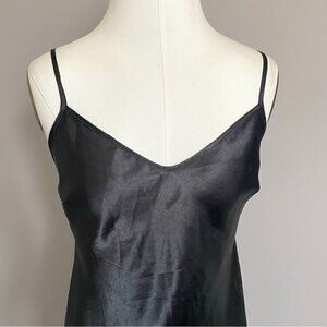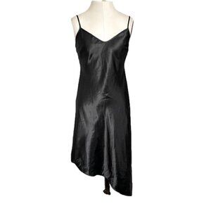 Vintage Black Satin Diagonal Asymmetric Hem Slip Dress - XS/S