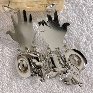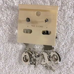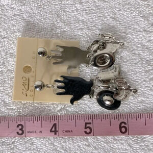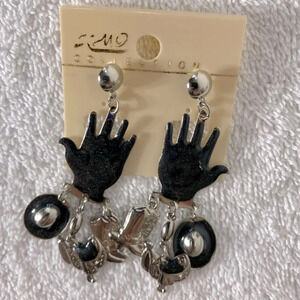 Vintage Black Silver Tone Metal Cowboy Hat Cowboy Boots Saddle Hand Earrings