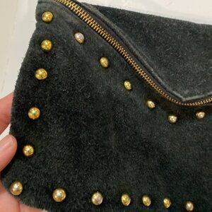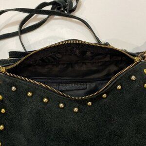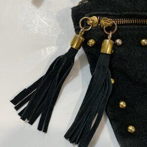 Vintage Black Studded Fringe Crossbody Suede Bag