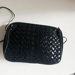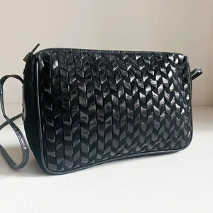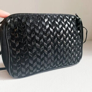Vintage Black Suede Woven Motif Small Compact Unique Camera Crossbody