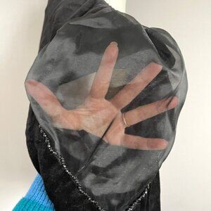 Vintage Black Velvet Bolero / Cropped Blazer w/ Sheer Shoulders - Small