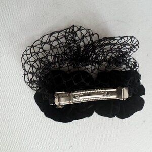 Vintage Black Velvet Floral Mesh Bun Cover Hair Clip