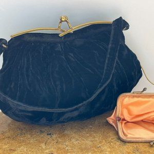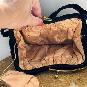 Vintage Black Velvet Purse with Coin Purse Small Cute Sling Shoulder Bags Wallet