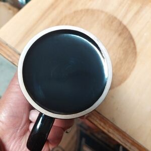 Vintage* Black & White Full Throttle Saloon Mug. South Dakota biker bar. Souvenir. Pre-owned. Stands approx 3.75" tall