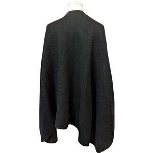 Vintage Black Wool Poncho Open Front Cape Shawl Dark Grunge Fall One Size