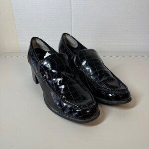 Vintage Black Y2K 90s Womens Black Croc Pleather Chunky Heel Shoes Size 10 SBB009