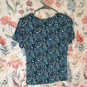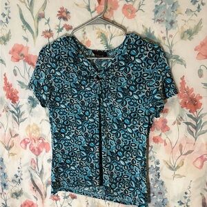 Vintage Black and Blue Fitted Blouse with Peter Pan Collar