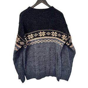 Stylish crewneck sweater with a classic pattern. Features black and cream colors. Perfect for casual wear.