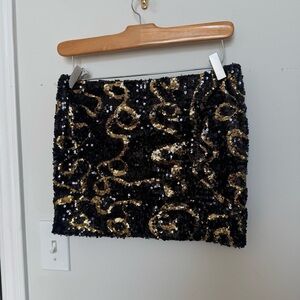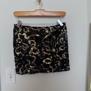 Shimmer in style with this stunning black and gold sequin skirt. Perfect for a night out, this skirt adds a touch of glamour to any outfit.