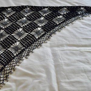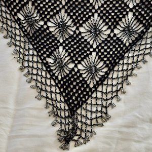 Beautiful Vintage Black and Silver Beaded Shawl in very good condition. No issues noted. Pleas see all photos.