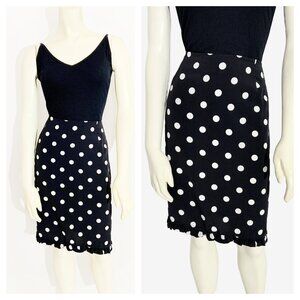 Vintage Black and White Polka Dot Print Skirt / size Medium
