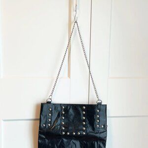 Vintage Black leather snake pattern bag with silver studs and chain strap
