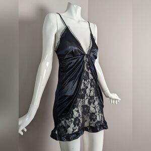 Vintage Black Lace Slip Dress Women’s XS/S Nylon Mini Adjustable Straps
