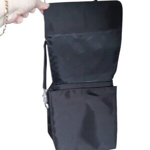 There is some minor paint transfer on the front flap, as pictured in last pic. 9" x 11" x 5". Multi compartments and pockets. Magnetic closure on the flap, many zippered compartments. Places for all your tech and other value items. Premium black heavy-duty canvas and complimentary silver hardware with the Blackberry Logo or Spell out throughout, all over print inside.