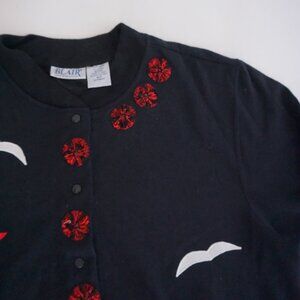 Vintage Blair Black Cotton Cardigan Cardinal Winter Cabincore Grandmacore XL