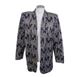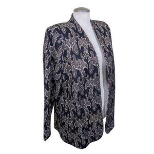 Vintage Blazer Jacket Women 16 Black Gold Metallic Floral Elegant Holidays Event