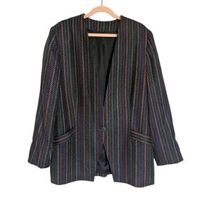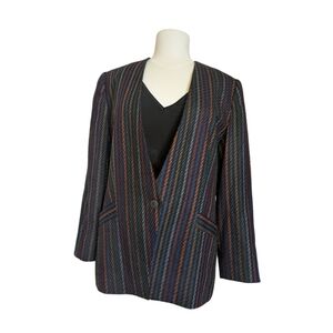 Vintage Blazer - Wool Blend Striped One Button Blazer Jacket Size Medium