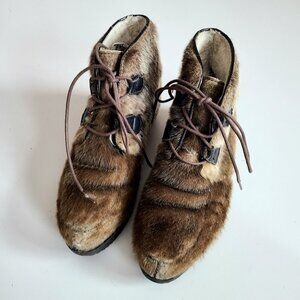 Vintage Blondo fur boots/booties with wool lining. Very warm, great for winter. Size 8. Shows some wear. See pictures. Made in Canada.