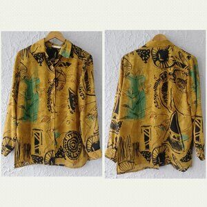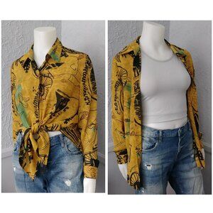 Vintage Blouse by Bantry Bay - yellow goldenrod with black and blue abstract