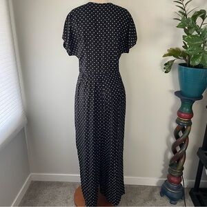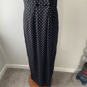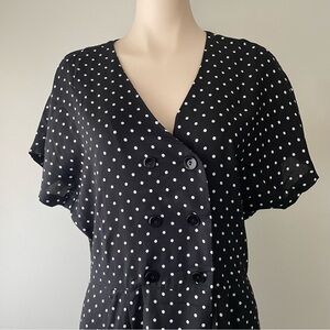 Vintage Blouseworks Polka Dot Wide Leg Jumpsuit Double Breasted Black White Plus