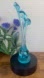 This striking vintage vase is crafted from vibrant aqua-blue art glass with a twisted stem and ruffled trumpet rim. The base features a ribbed design with a solid, weighted form, giving the piece stability and presence. Its bright blue hue and elegant sculptural form make it a standout display piece.