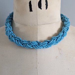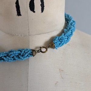 Beautiful blue twisted braid beaded necklace from the mid-twentieth century. In great condition. Clasp closure. 18" long.