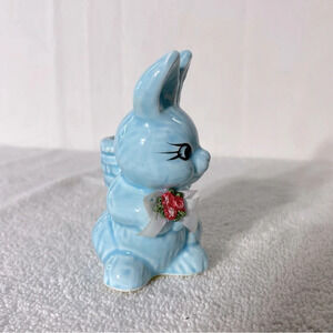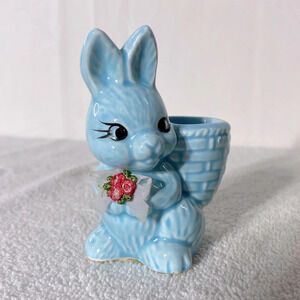 Vintage Blue Bunny Rabbit Egg Cup Holder 1950’s Anthropomorphic
