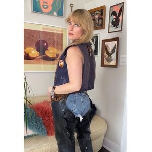 Vintage Blue Denim & Fringe Biker Vest • Daytona Bike Week 1991 • Cali - Small