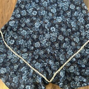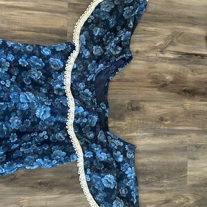 Elegant blue floral dress with white trim. Perfect for any occasion