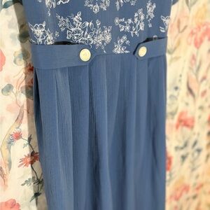Vintage Blue Embellished Buttoned Sheath Midi Dress