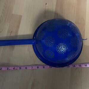 Beautiful, Vintage, Blue Enamel, Farmhouse style sieve, colander 16" long, 9" diameter.