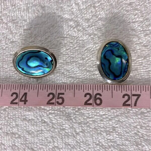 Vintage Blue Faux Abalone W Silver Tone Trim Oval Clop On Earrings