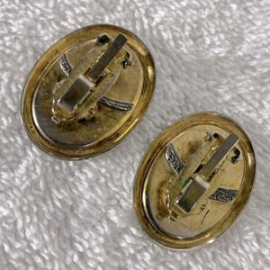 Vintage Blue Faux Abalone Print W Silver Tone Trim Oval Clop On Earrings