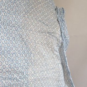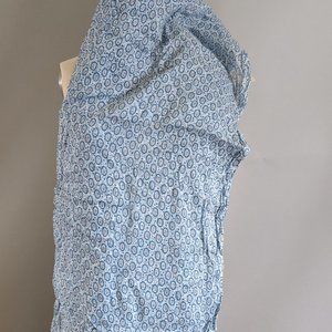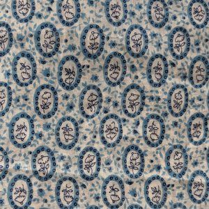 Beautiful lightweight cotton vintage fabric with blue floral pattern. I don't know the exact fabric composition, but this is a breathable, light, slightly sheer (see photos with my hand under the fabric) fabric. It's 40" wide by 4 yards in length. In great condition except for two tiny orange spots (see last photo). I bought this as new old stock, so I just laundered it for the first time in its life :) From a smoke, scent, and pet-free home.