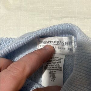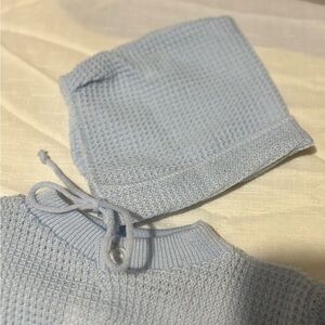 Adorable blue kids matching set featuring a cozy sweater, hat, and booties. Perfect for keeping your little one warm and stylish.