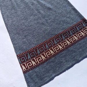 Vintage Blue Knit Long Skirt with Burgundy Pattern - Creations Isadora Small