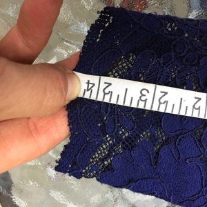 Handmade Blue Lace Jacket. Lovely over a formal dress for a little coverage without losing the shape of what is underneath but can pair well casually with jeans. 2 button closure at the front needs two stitches. Gently worn.