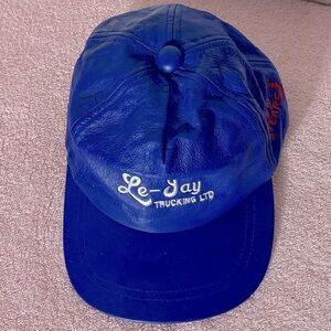 Vintage Blue Leather Le-Jay Trucking Trucker Hat