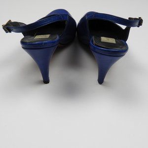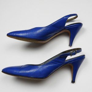 Cobalt blue leather show. Vintage from Eaton's Department store. Size 5.5/6. 2.5 inch heel. Right heel cap needs to be replaced.