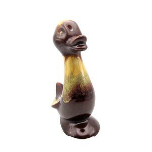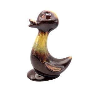 Vintage Blue Mountain Pottery BMP 5.5" Duckling Figurine Brown Yellow Drip Glaze