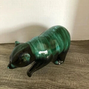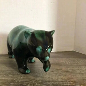 Stunning teal and black drip glaze redware bear made by Blue Mountain Pottery in Collingwood Ontario. The company has since closed its doors so this is one of the last remaining in existence.